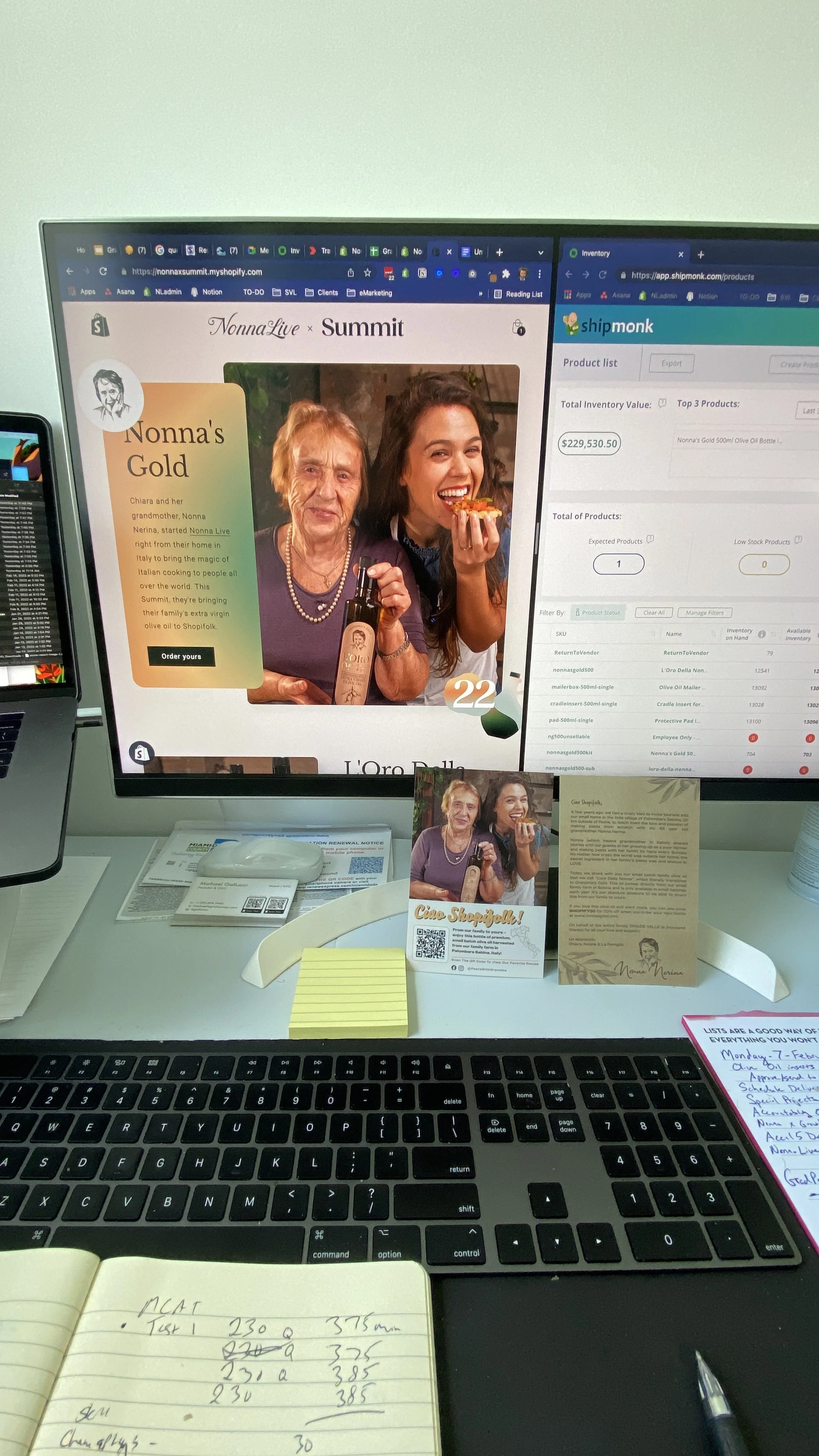 "When COVID shut down Chiara & her grandmother's in-person pasta-making experiences in their village of Palombara Sabina, Italy, they pivoted to virtual experiences. I parachuted in to oversee eCommerce operations and spearheaded the creation of Nonna's Gold olive oil to preserve the legacy of Nonna Nerina, and expand their product offering. We sold over 12,000 units in year one and shipped to 60+ countries. The execution was so strong that Shopify selected us as the only 1 of 2.3 million stores to feature in a documentary for their company summit."